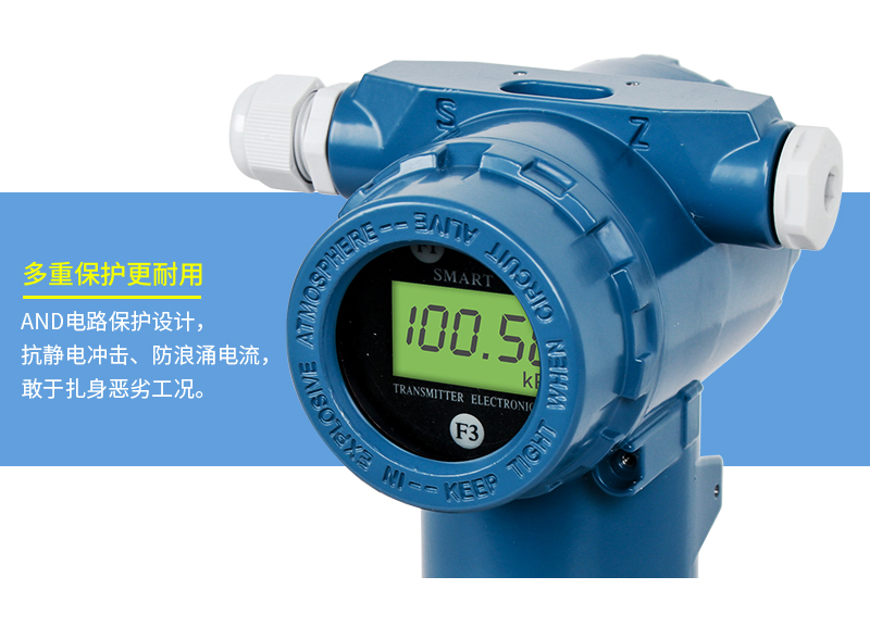 產(chǎn)品描述:SIN-3051系列壓力變送器利用差動(dòng)電容檢測(cè)的原理,當(dāng)膜片兩側(cè)壓力不一致時(shí),使容室中測(cè)量膜片產(chǎn)生位移,其位移量與壓力差成正比,通過電路處理將電容變化量轉(zhuǎn)換成4~20mA的二線制電流或電壓信號(hào),可帶上458協(xié)議或者HART通訊協(xié)議功能。該變送器具有堅(jiān)固抗振,量程,零點(diǎn)和阻尼現(xiàn)場(chǎng)連續(xù)可調(diào)。