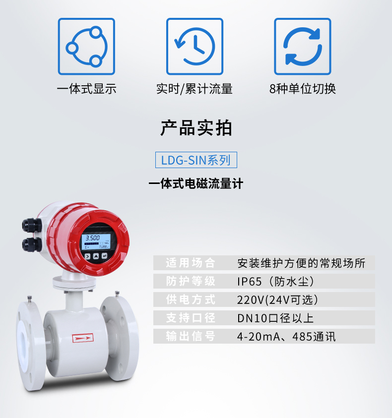 產(chǎn)品描述:聯(lián)測LDG電磁流量計(jì)適用于化工助劑、海綿城市、給水排水、水利灌溉、水處理、污水處理(環(huán)保污水控制、化工污水、電鍍污水)、造紙漿液(紙漿)、泥漿、醫(yī)藥原料、食品等工農(nóng)業(yè)的生產(chǎn)公司過程流量測量和控制,標(biāo)配485通訊功能。
