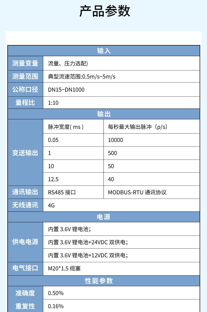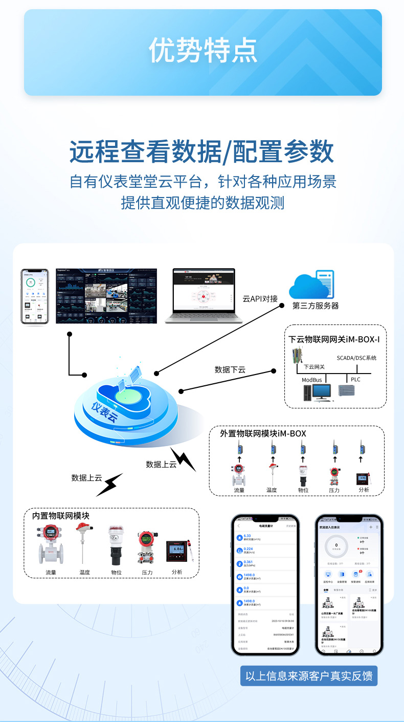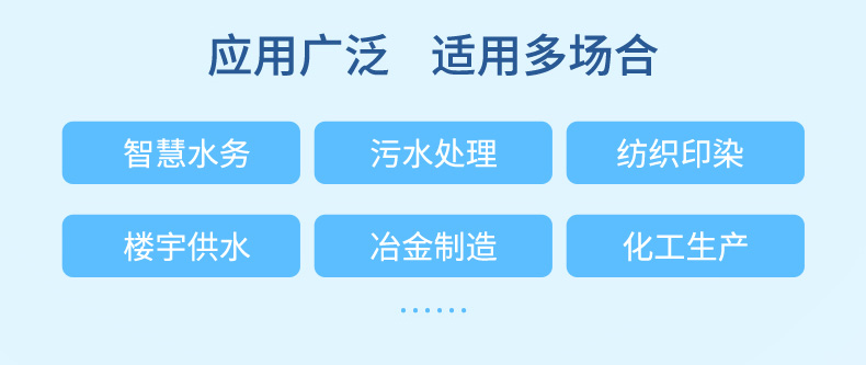 產(chǎn)品描述:無線電磁流量計(jì)由電磁流量計(jì)和 4G 無線遠(yuǎn)傳模塊共同組成,用于測量封閉管道內(nèi)導(dǎo)電液體的瞬時(shí)流量和累積流量。測量數(shù)據(jù)通過 4G 信號遠(yuǎn)傳至網(wǎng)絡(luò)接收平臺,用戶可以通過瀏覽器、微信公眾號等方式靈活方便地查看數(shù)據(jù)、遠(yuǎn)程配置參數(shù)等功能,實(shí)現(xiàn)智能物聯(lián)。廣泛應(yīng)用于自來水、化工、煤炭、環(huán)保、輕紡、冶金、造紙等行業(yè)。