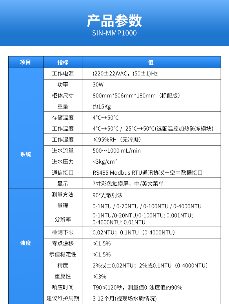 產(chǎn)品名稱:聯(lián)測(cè)_SIN-MPP1000水質(zhì)在線分析儀_濁度、余氯/二氧化氯、pH、溫度、電導(dǎo)率/TDS、溶解氧、ORP等