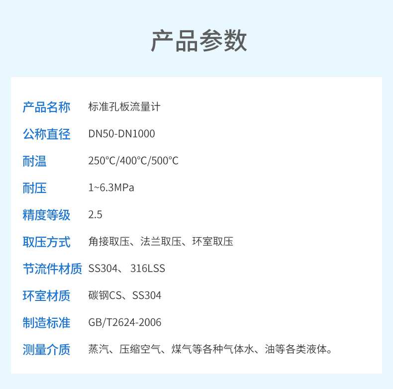 產(chǎn)品描述:本款孔板流量計適用被測介質(zhì)寬廣,幾乎可用于所有氣體、蒸汽和液體的流量測量,管徑范圍廣;可耐高溫耐高壓可通過設(shè)置差壓變送器量程在現(xiàn)場改變流量范圍,使用、操作簡單、易掌握,日常維護量小。