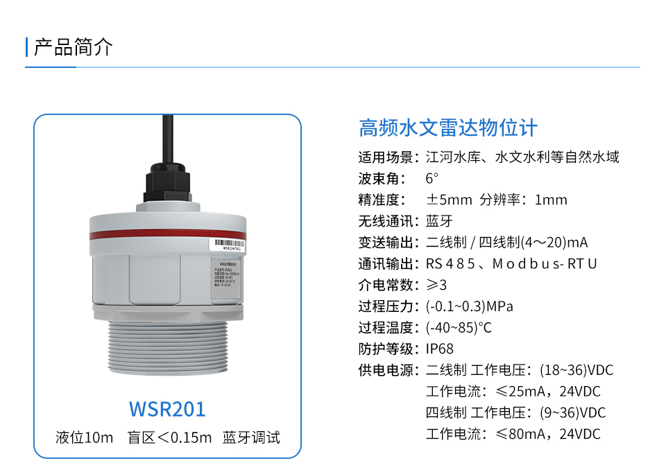 產(chǎn)品描述:雷達(dá)液位計(jì)是利用高頻微波雷達(dá)技術(shù)實(shí)現(xiàn)對水文信息的實(shí)時監(jiān)測和精準(zhǔn)測量。相較于傳統(tǒng)的水文監(jiān)測方法,雷達(dá)技術(shù)具有測量精度高、實(shí)時性強(qiáng)、適用范圍廣等優(yōu)勢。本產(chǎn)品波束能量低,對人體及環(huán)境均無傷害,還具有不受介質(zhì)比重的影響、不受介電常數(shù)變化的影響、不需要現(xiàn)場校調(diào)等優(yōu)點(diǎn),廣泛應(yīng)用江河、水庫、湖泊、灌渠、河道等自然水域水文監(jiān)測場合。