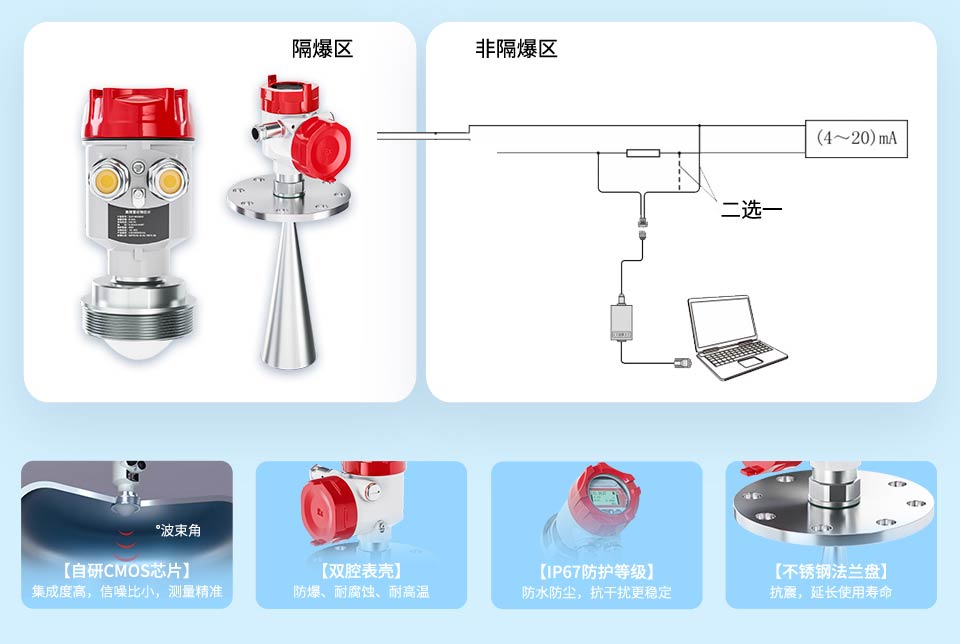 產品描述:80G高頻防爆雷達液位計工作頻率更高,波長更短,所以尤其適合固體應用,通過透鏡發(fā)射接收電磁波的工作方式,在高粉塵,惡劣溫度環(huán)境下具有獨特的優(yōu)勢。儀表提供法蘭或者螺紋的連接方式,使得安裝便捷簡易。