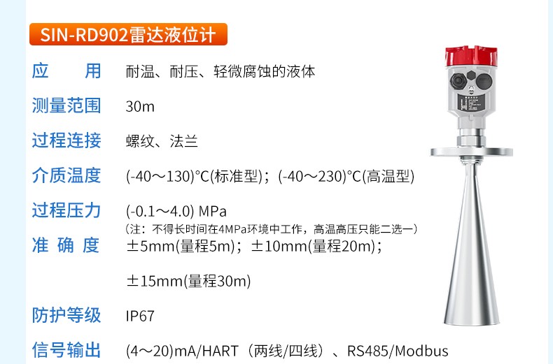 產(chǎn)品名稱:SIN-RD905雷達(dá)料位計(jì)_適用于固體顆粒、粉料