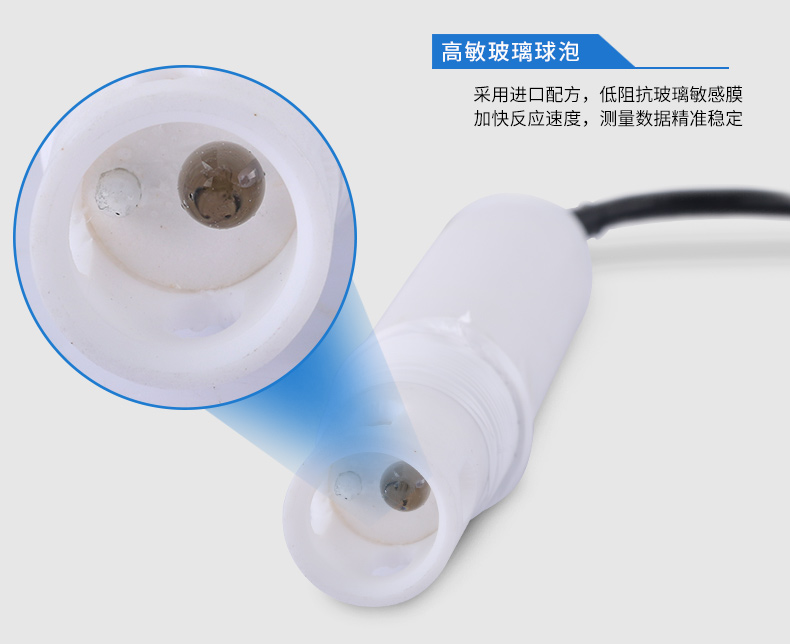 產(chǎn)品描述:低阻抗玻璃敏感膜,耐磨、抗強酸強堿,探頭前置 環(huán)狀保護圈,保護玻璃球泡,精度和線性度更佳。CN4