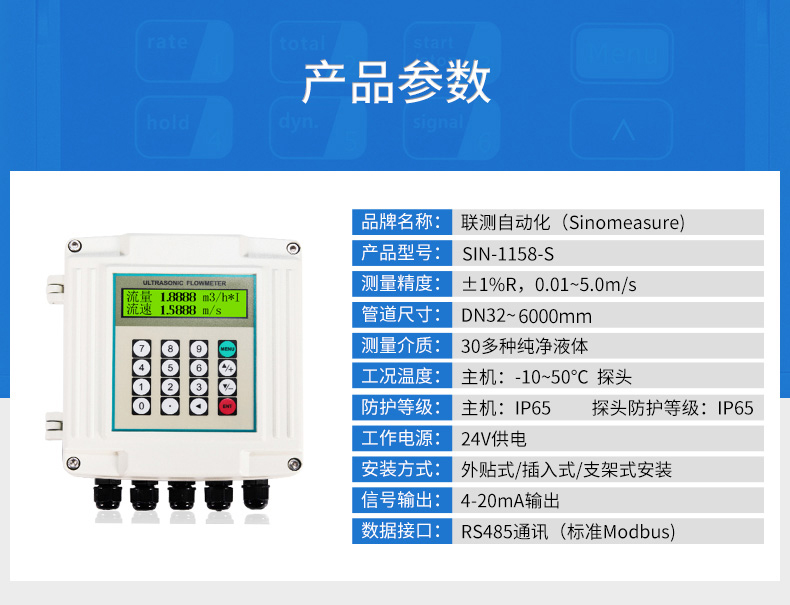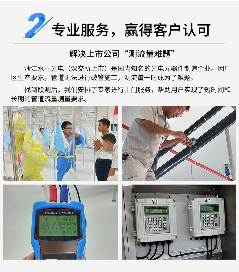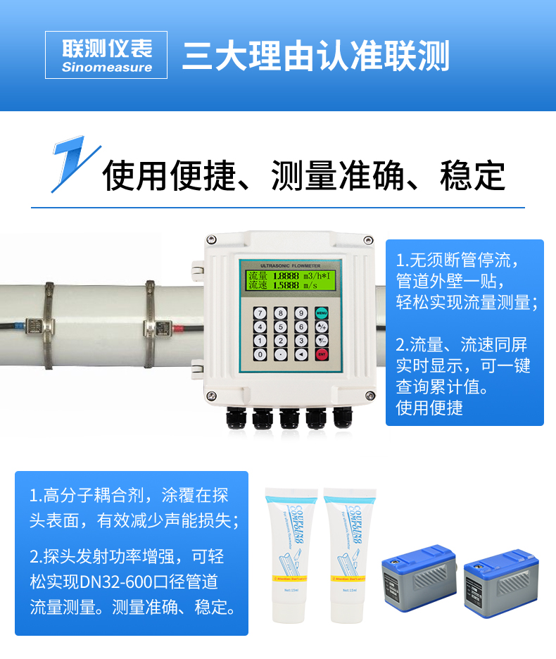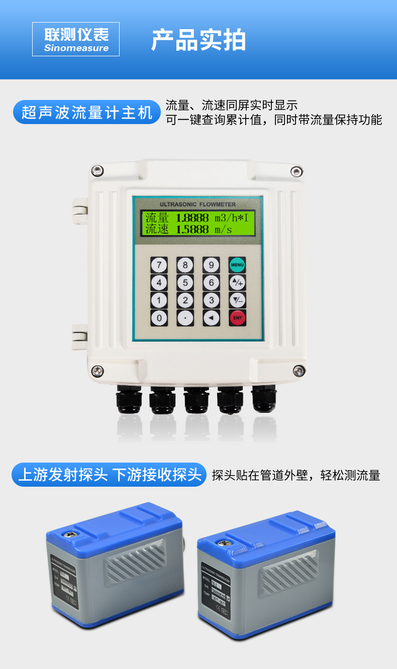 產(chǎn)品描述:聯(lián)測超聲波流量計(jì)適合相對純凈液體流量的管外測量,尤其是在水流量測量、在工業(yè)循環(huán)水、空調(diào)制冷循環(huán)水、原水、高壓水、自來水,污水排放管等廣泛應(yīng)用。