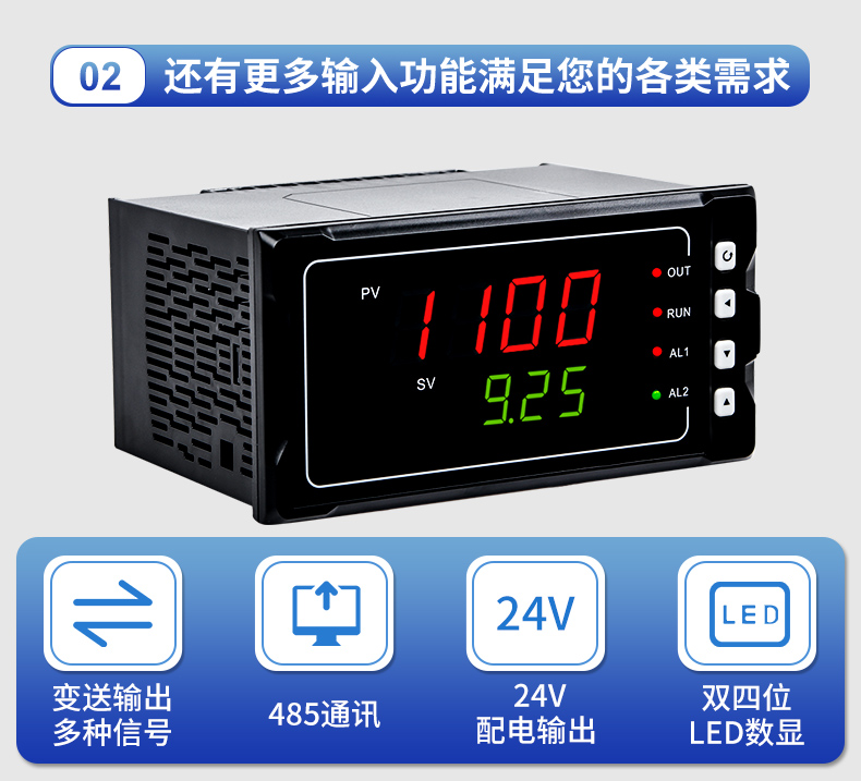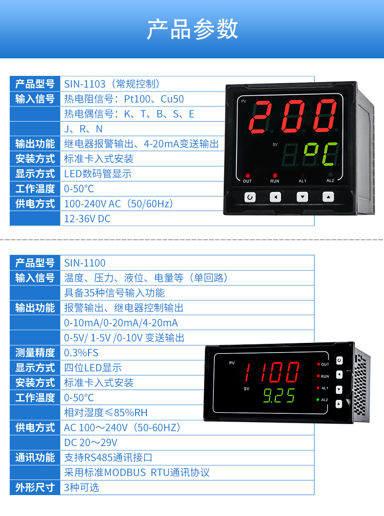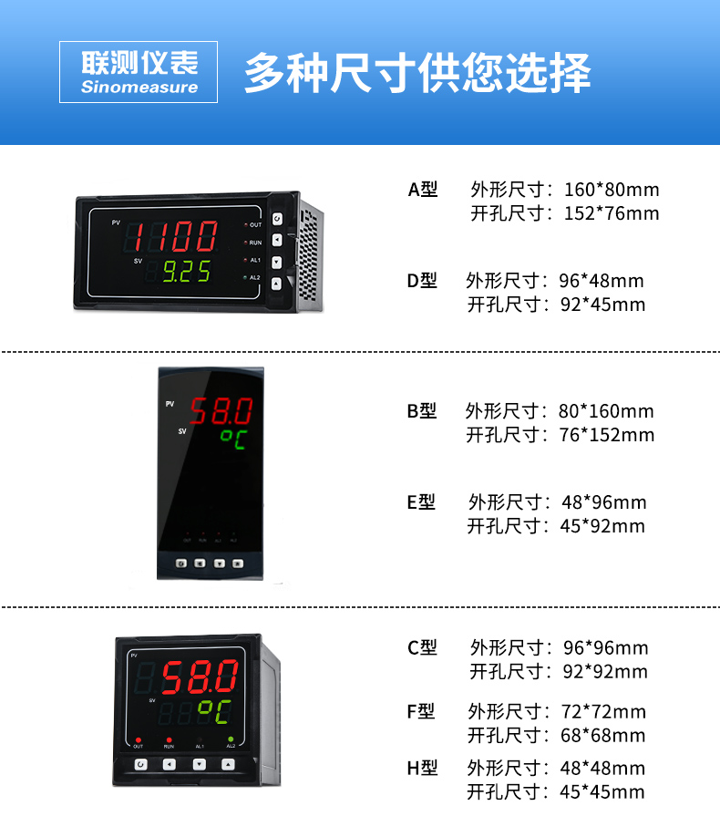 產(chǎn)品描述:聯(lián)測(cè)SIN-1100數(shù)顯表(簡(jiǎn)易型),傻瓜式操作,0.3級(jí)測(cè)量精度,7款外型尺寸,雙四位LED顯示,可支持熱電偶、熱電阻、電壓(可開方運(yùn)算)、電流(可開方運(yùn)算)及變送器輸入,適用溫度、壓力、流量、液位、濕度等工業(yè)過程量的監(jiān)測(cè)。
