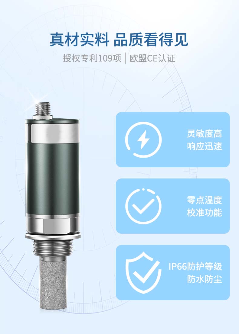 產(chǎn)品描述:當(dāng)測(cè)量介質(zhì)的露點(diǎn)溫度>-40℃td,高分子電容傳感器對(duì)比于其他類(lèi)型的傳感器在該區(qū)間無(wú)論是精準(zhǔn)度、響應(yīng)速度還是長(zhǎng)期穩(wěn)定性均為最優(yōu),并且性?xún)r(jià)比最高; 革新的自校準(zhǔn)電路設(shè)計(jì),能自動(dòng)補(bǔ)償溫度、污染、老化引起的電路漂移,提供長(zhǎng)期可靠的高精度測(cè)量; 創(chuàng)新的溫度補(bǔ)償算法及出廠前多點(diǎn)溫度的補(bǔ)償校驗(yàn),大大改善了傳感器的溫度漂移,保證了寬溫度范圍內(nèi)的高精度測(cè)量