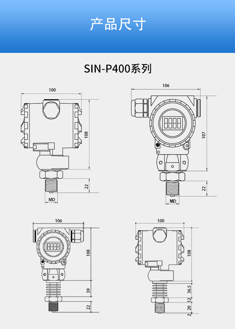 產(chǎn)品名稱:聯(lián)測_SIN-P400_2088型壓力變送器_榔頭型_可帶顯示
