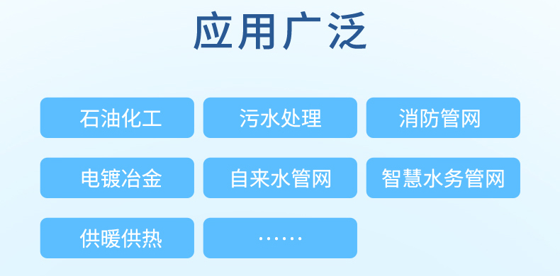 本產(chǎn)品適合油田、水利、消防管網(wǎng)、自來(lái)水管網(wǎng)、城市供熱管網(wǎng)等智慧城市應(yīng)用場(chǎng)景。