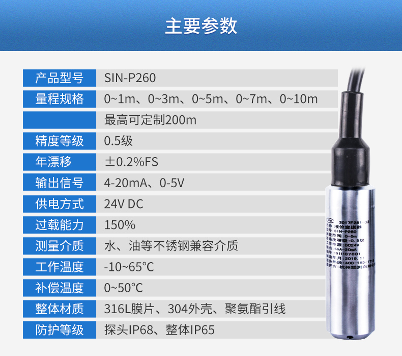 產(chǎn)品名稱:聯(lián)測_SIN-PX261殼體投入式液位計(jì)/水位計(jì)_顯示型