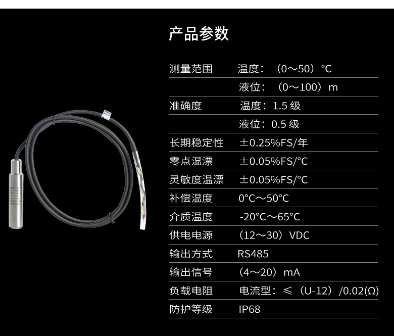 產(chǎn)品描述:溫液一體變送器應(yīng)用于工業(yè)領(lǐng)域流體的深度測(cè)量, 可將被測(cè)深度參數(shù)值轉(zhuǎn)換成RS485 標(biāo)準(zhǔn)信號(hào),可與多種儀表相配套,可廣泛用于交通運(yùn)輸、 石油、化工、冶金、輕工等領(lǐng)域。CN2