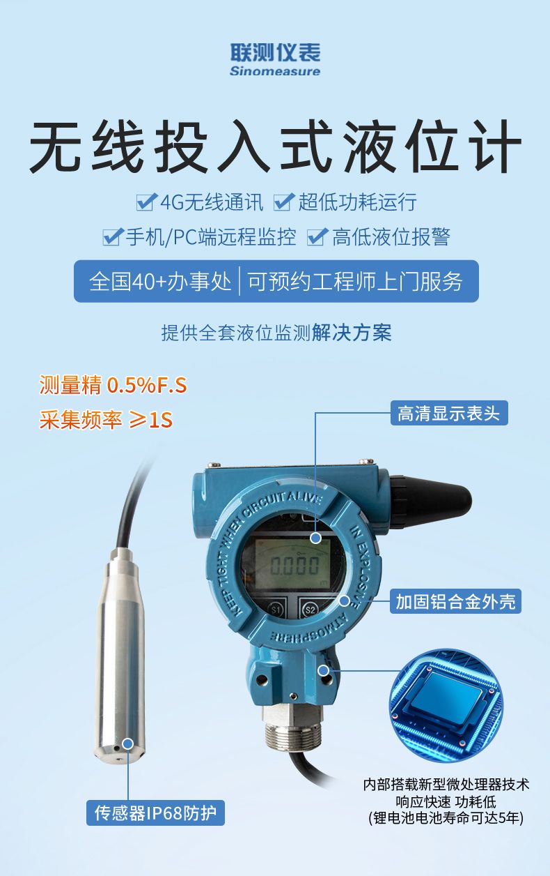 產(chǎn)品名稱:聯(lián)測(cè)_WSP800 無(wú)線投入式液位計(jì)/油田、水利、消防管網(wǎng)/工作溫度范圍(-30~70)℃/
